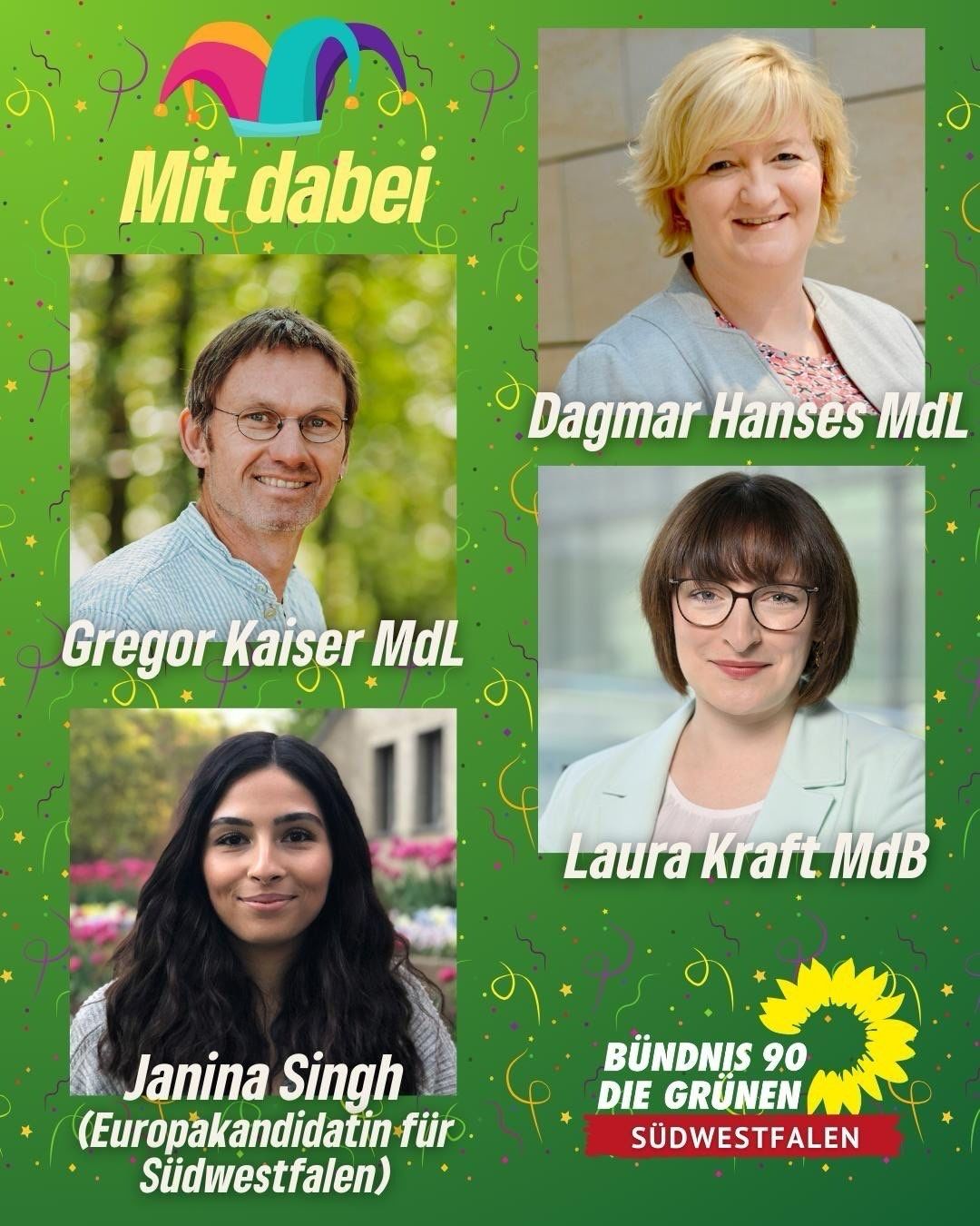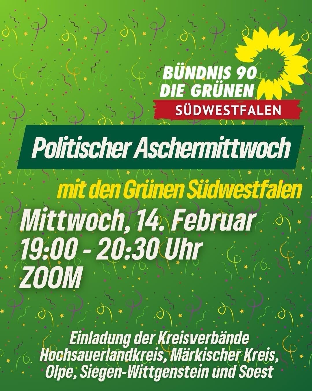 Wir möchten euch deshalb gerne zum 2. Online – Aschermittwoch-Treff am 14. Februar um 19.00h einladen! Auch wenn die Zeiten für die Welt und für uns Grüne rauer geworden sind, wollen wir gerne ein kleines Momentum aus dem Karneval mitnehmen, denn nie können die Zeiten so finster sein, dass Humor sie nicht ein wenig erträglicher machen könnte. Andererseits erleben wir gerade, dass die bürgerliche Mitte gegen die Neofaschisten der AfD und andere unerträgliche Zeitgenossen aus dem rechtsradikalen Spektrum aufsteht und verstanden hat, dass Demokratie wie Zähneputzen ist: putzt man sie nicht täglich, wird’s ganz schnell braun! Wie können wir dieses Erwachen der bisher schweigenden Mehrheit in den Europawahlkampf hineintragen? Denn nur sie kann einen Rechtsruck in Deutschland und damit eine Vorlage für die anstehenden Landtagswahlen verhindern. Das wollen wir mit Janina, unserer EU-Kandidatin diskutieren, und natürlich wieder mit Dagmar, Laura und Gregor.
