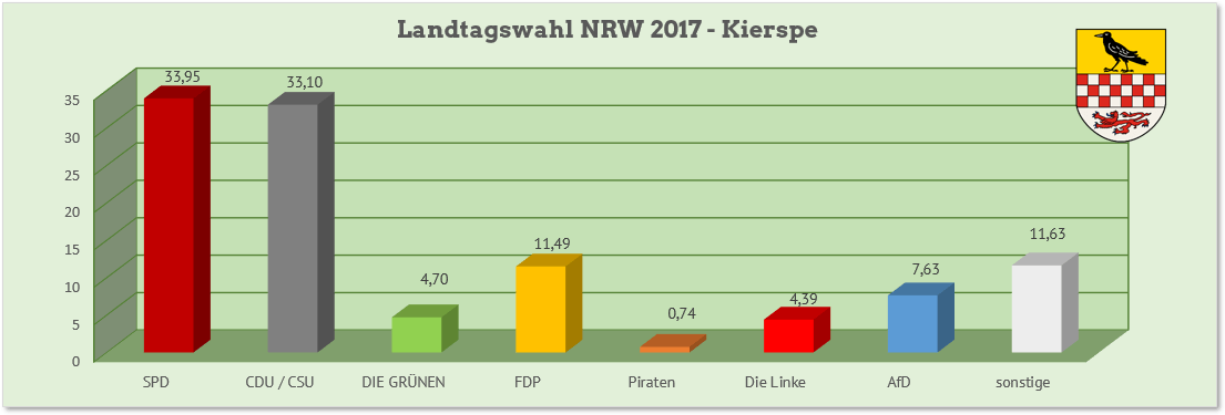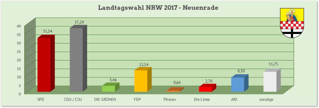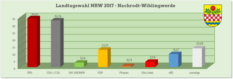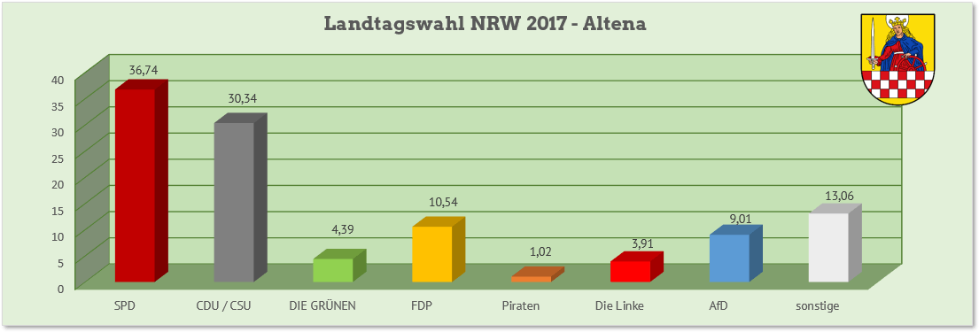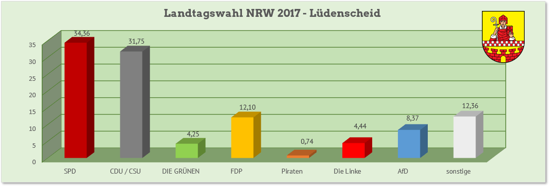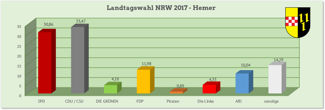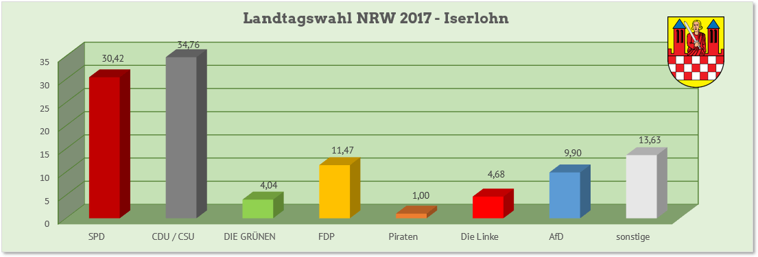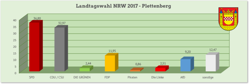 Hier finden Sie die Ergebnisse der Landtagswahl 2017, aufgeteilt in NRW-Gesamtergebnis, Ergebnis im Märkischen Kreis und den einzelnen Städten des märkischen Kreises.